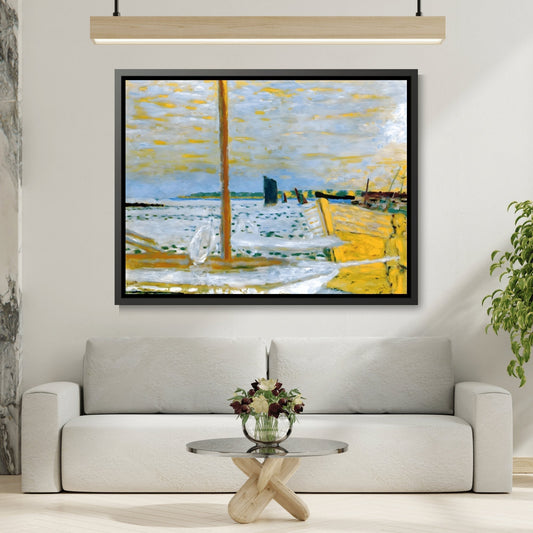 Pierre Bonnard Yellow Boat - Framed Canvas Wall Art Print in Black Pinewood Frame