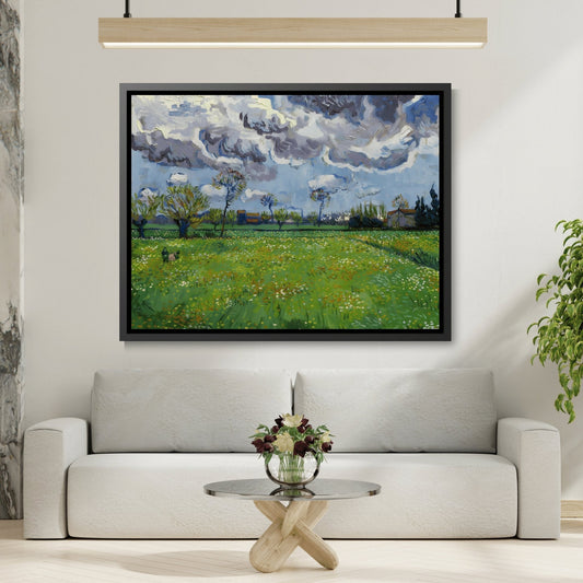 Vincent van Gogh Landscape Under a Turbulent Sky - Famous Framed Canvas Wall Art Print in Black Pinewood Frame