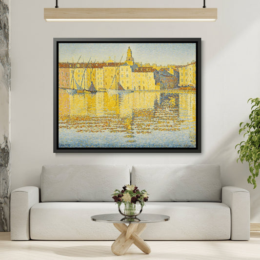Paul Signac Maisons du port Saint-Tropez - Framed Canvas Wall Art Print in Black Pinewood Frame