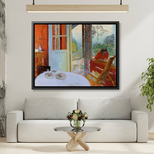 Pierre Bonnard Dining Room in the Country - Framed Canvas Wall Art Print in Black Pinewood Frame