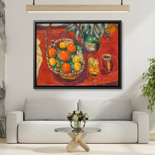 Pierre Bonnard Oranges and Persimmons Fruits - Framed Canvas Wall Art Print in Black Pinewood Frame