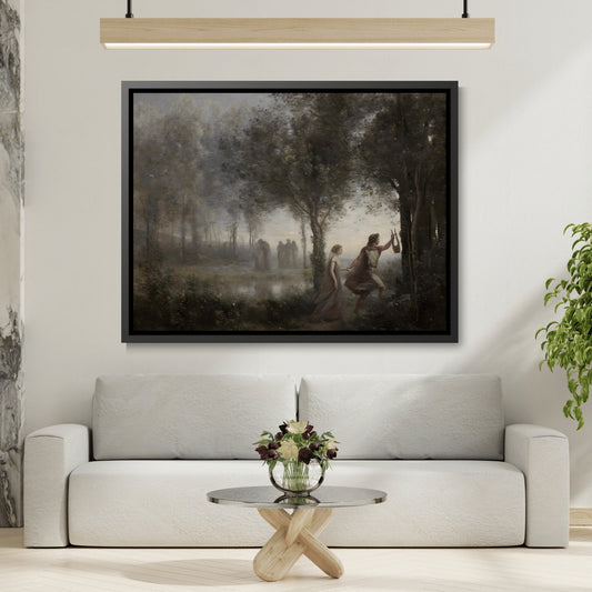 Jean Baptiste Camille Corot Orpheus Leading Eurydice from the Underworld - Framed Canvas Wall Art Print in Black Pinewood Frame