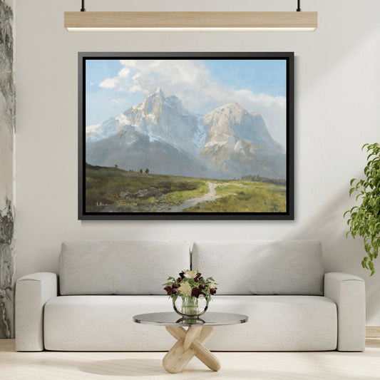 Konrad Petrides Mountain Landscape - Canvas Wall Art Print in Black Frame