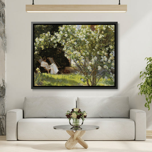 Peder Severin Kroyer Roses - Framed Canvas Wall Art Print in Black Frame