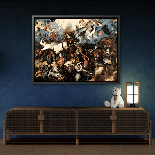 Pieter Bruegel the Elder Fall of the Rebel Angels - Framed Canvas Wall Art Print in Black Pinewood Frame