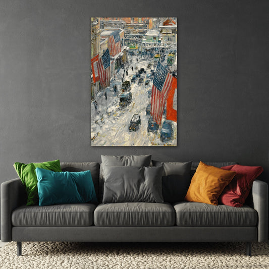 Childe Hassam Flags 57th Street - American Canvas Wall Art Print