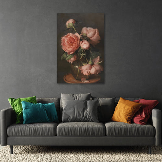 Moody Floral Pink Peonies - Flower Canvas Wall Art Print