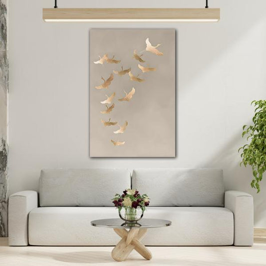 Vintage Minimalist Flock of Cranes Canvas Print - Japanese Asian Bird Beige Gold Wall Art