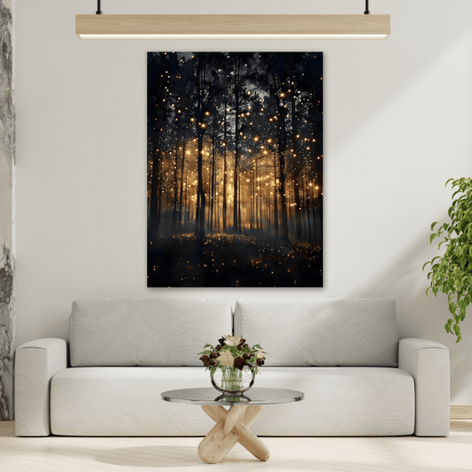 Enchanted Botanical Forest Firefly Canvas Wall Art Print - Artful Nature Fireflies