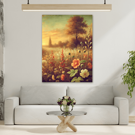 Vintage Wildflower Rustic Canvas Landscape - Sunset Botanical Flowers Wall Art