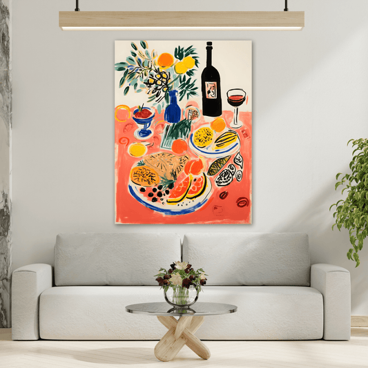 Dinner Table Food Retro Canvas Wall Art Print - Vintage Kitchen Illustration Decor for Chef