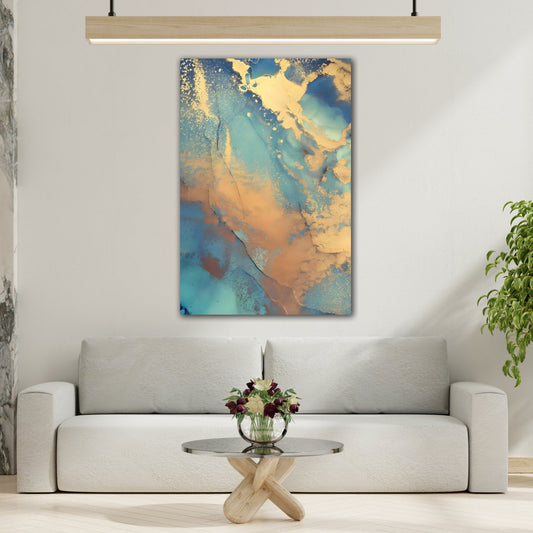 Golden Swirls on Azure - Modern Blue and Gold Abstract Canvas Wall Art Print