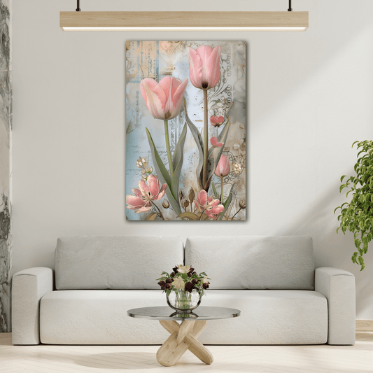 Pink Tulips Vintage Floral Canvas Wall Art Flowers Print