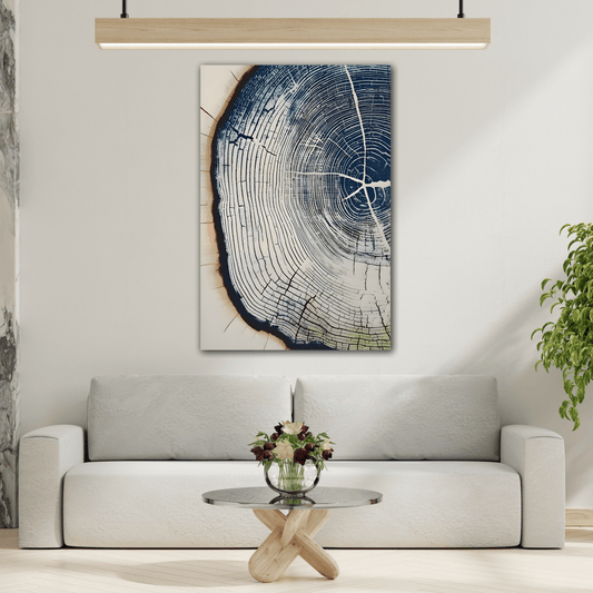 Canvas Wall Art Navy Blue Wood Tree Ring Print, Modern Rustic Farmhouse Lodge