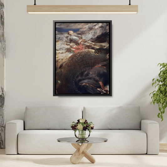 Briton Riviere George and the Dragon - Framed Canvas Wall Art Painting Print in Black Frame