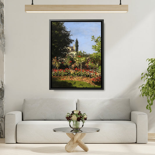 Claude Monet Garden Bloom Sainte Addresse - Framed Canvas Wall Art Print