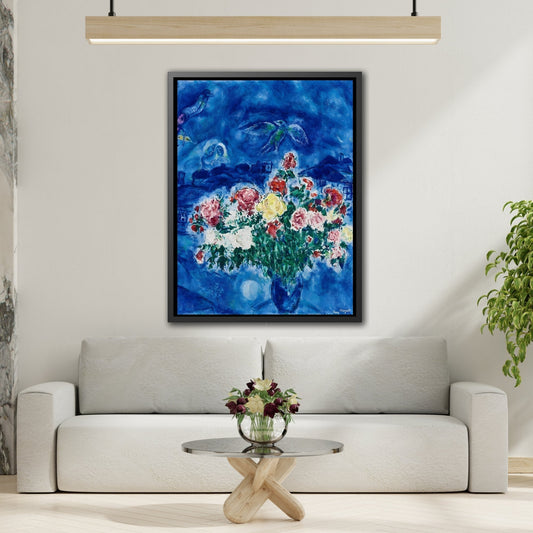 Framed Floral Canvas Print Peonies Flower - Marc Chagall Wall Art in Frame
