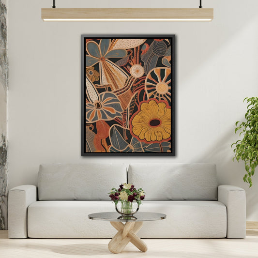 Framed Flowers Floral Botanical Canvas Wall Art Print - Mid Century Modern Boho Decor Prints in Black Frame