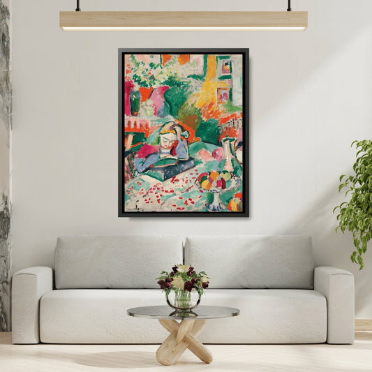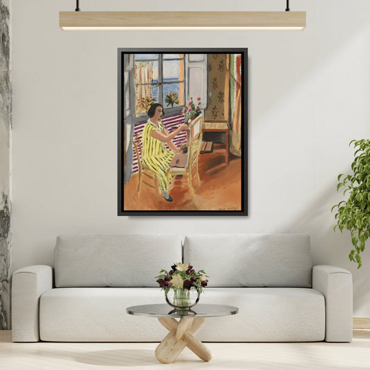 Henri Matisse Interior with a Young Girl - Framed Colorful Canvas Wall Art Print in Black Pinewood Frame
