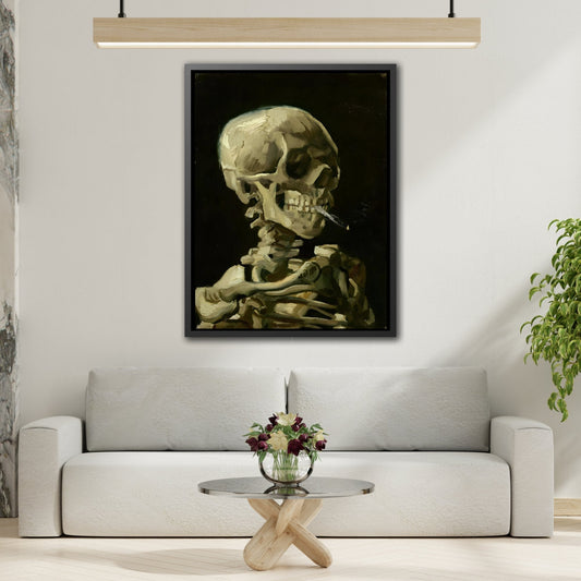 Skull of a Skeleton with Burning Cigarette - Famous Framed Canvas Van Gogh Wall Art Print in Exclusive Frame