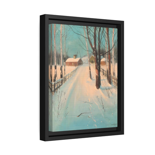 Svend Svendsen Birch Lined Road in Winter - Framed Canvas Wall Art Print in Black Frame