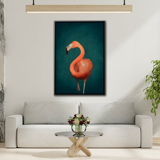 Flamingo Canvas Wall Art Print - Pink and Green Living Room Decor in Exclusive Frame