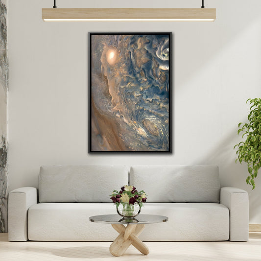 Framed Natural Abstract Canvas Wall Art Print - Nasa Astronomy Space Colorful Jupiter Cloud Storm in Black Frame