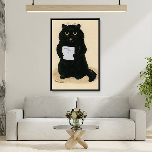 Louis Wain Home Sweet Home Cat - Framed Canvas Art Reproduction