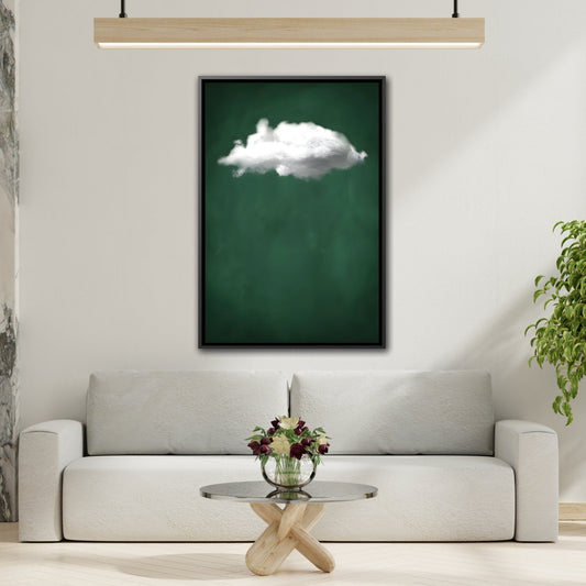 Minimalist Green with Cloud Wall Art Canvas Print - Abstract Home Decor Artwork in Black Frame