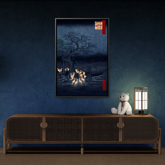 Utagawa Hiroshige Kitsunebi New Years Night - Framed Canvas Print