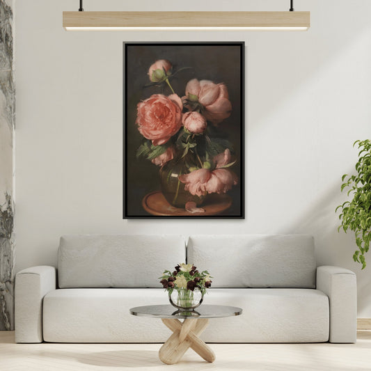 Vintage Pink Peonies Flowers - Framed Canvas Wall Art Reproduction