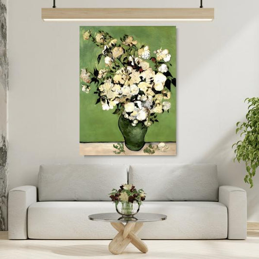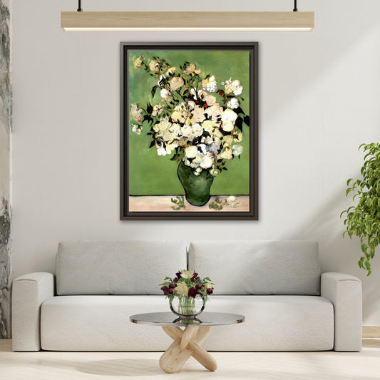 White Flowers Van Gogh Canvas Print - Vase of Roses Wall Art in Exclusive Frame