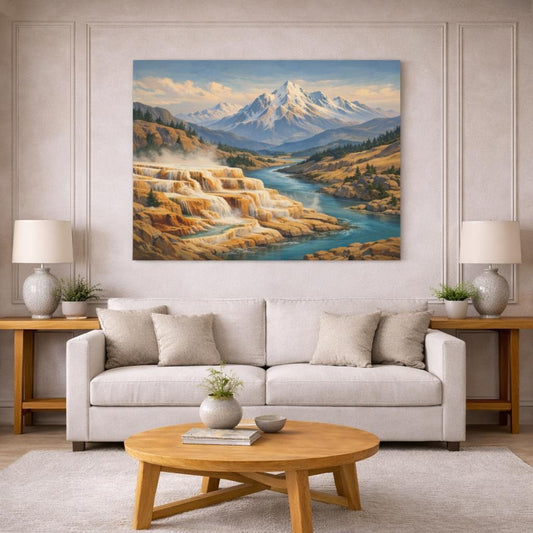 Mineral Flow Vintage Travel Mountain Waterfall Nature - Canvas Wall Art Print