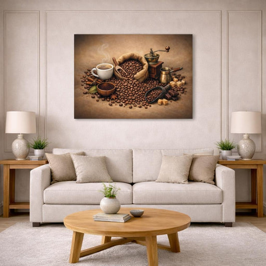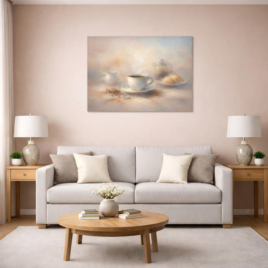 Vintage Coffee Cup Warm Scene - Canvas Wall Art Print