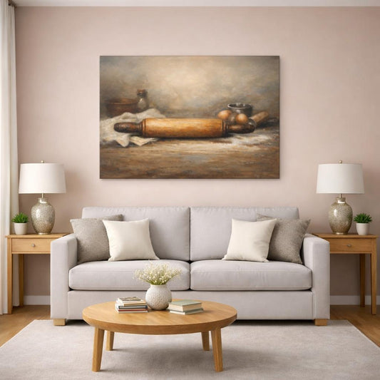 Vintage Rolling Pin Rustic Baking - Canvas Wall Art Print