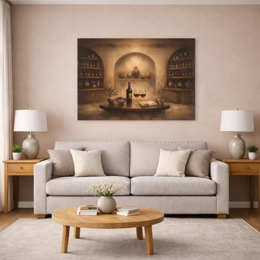 Vintage Wine Cellar Brown And Gold - Canvas Wall Art Print