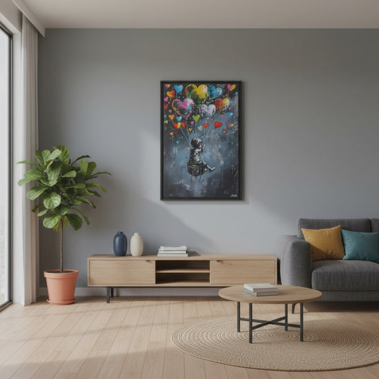 Child Balloon Banksy - Framed Canvas Wall Art Print