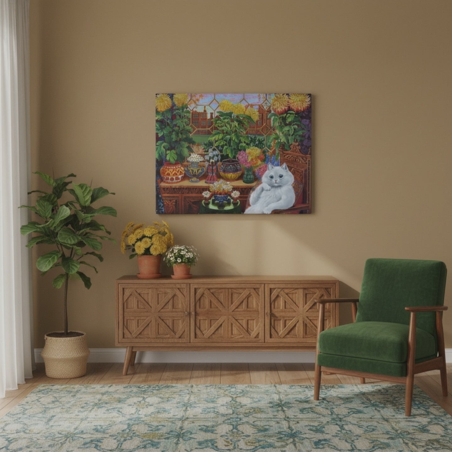 Louis Wain Cat in the Garden Room - Canvas Wall Art Print
