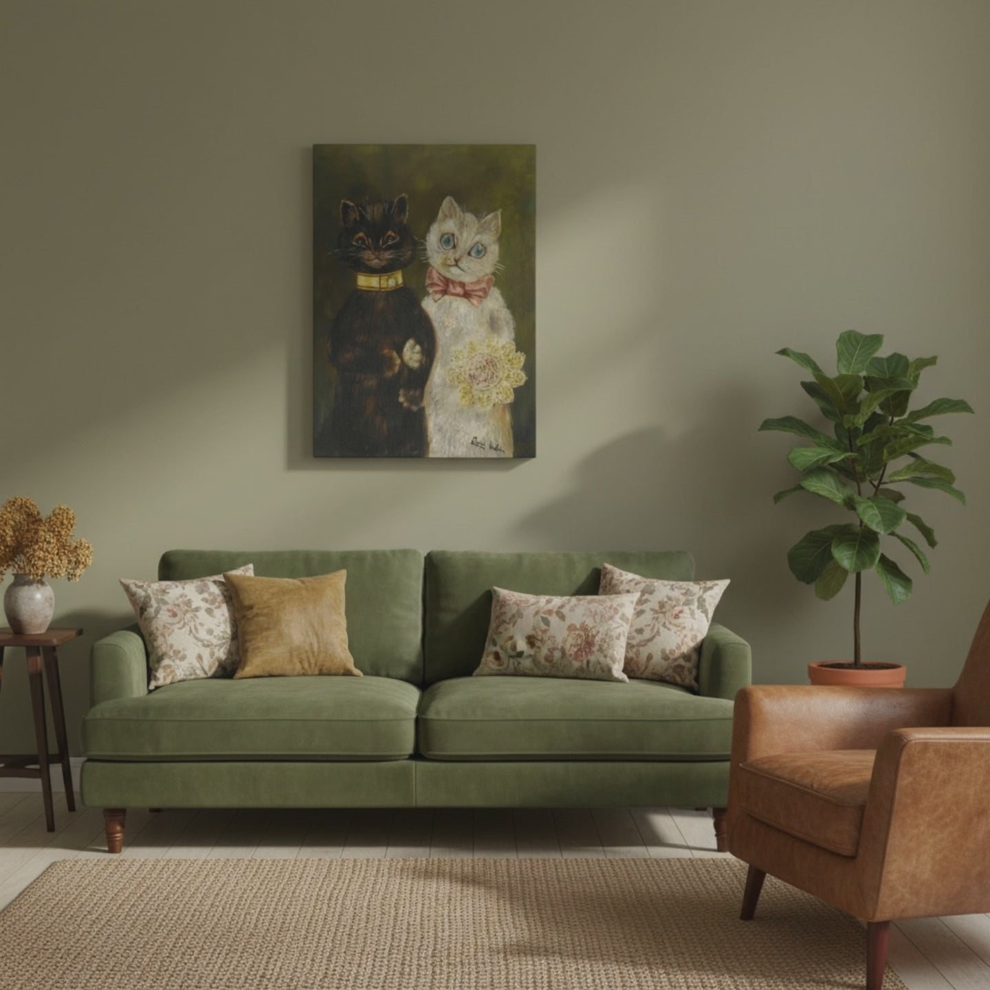 Louis Wain Bride and Groom Cats - Canvas Wall Art Print