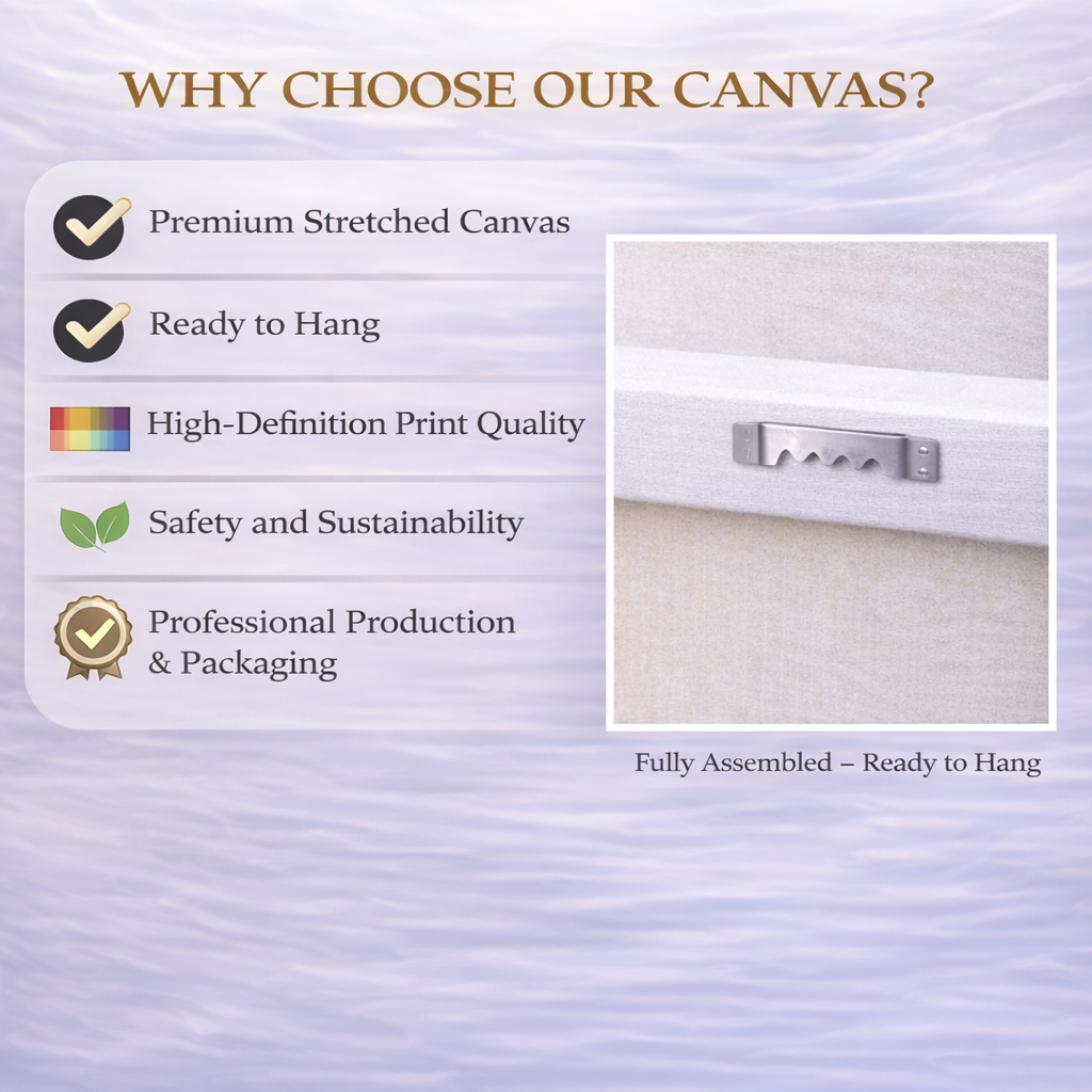 - Premium canvas stretched over a solid wood frame.